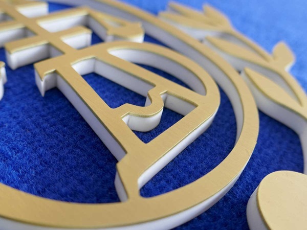 Acrylglas mit Messingfronten verleihen Logos und Schriftzügen einen eleganten Stil. Ob Bankhaus, Kanzlei oder Traditionsmarke: Messing betont Wertigkeit.